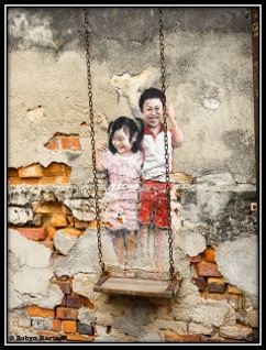 Penang street art was made famous by Ernest Zacharevic an artist from Lithuania, after he created murals for the George Town Festival in 2012. Louis Gan is a local street artist that needs to be mentioned here too. This amazing artist has a hearing disability and was born deaf with a speech impediment. He had a love for art and taught himself how to paint through watching videos and practicing on canvas. Along with these two great artists work, George Town is now home to many new pieces by both commissioned artists and local street artists alike. For the 2013 George Town Festival the ASA, Artists for Stray Animals, were commissioned to do a project called “101 Lost Kittens” to create more awareness for strays. Along with these giant wall murals that were commissioned, you’ll find local artists showcasing their work on pipes, down alleys, in doorways and in front of shops. Paintings are not all you’ll find in George Town. There are also 50+ wrought-iron caricatures named “Marking George Town” that tell the history of Penang’s Georgetown in the form of a funny cartoon. There is always something new to see when you walk the streets of downtown George Town.