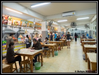 The Space: This food court style area is cooled by fans (although there are four air conditioning units, I don’t think they ever turn them on), and there’s plenty of space to sit. There are TV’s in the room showing local news and free watercoolers to drink from. At the time I ate I was the only westerner in the place. Nice place to chill after shopping in the busy market.