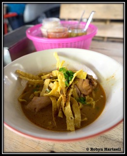 The Menu: One dish here Khao Soi; the other food stall serves chicken on rice. You can get either as they share the same tables.